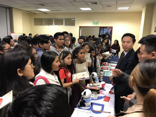 他說,隨著中文和中國文化的影響力在秘魯?shù)闹饾u升溫,越來越多的人開始學(xué)習(xí)中文,中文學(xué)校也越來越多。目前,中秘雙方合作,在秘魯建有孔子學(xué)院4所,已經(jīng)成為介紹中國語言文化、促進(jìn)秘魯民眾了解中國,增進(jìn)兩國教育文化合作的重要平臺。目前在秘魯就讀中國留學(xué)生已有幾萬人。希望這樣的交流活動(dòng)能經(jīng)常舉辦,讓兩國的學(xué)生有更多的機(jī)會(huì)去交流。