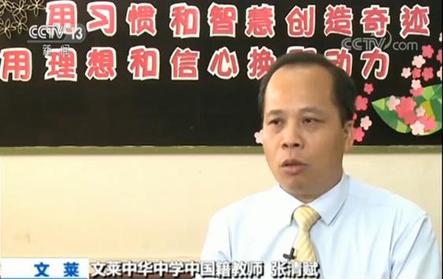 文萊中華中學(xué)中國(guó)籍教師張清賦:“ 在這邊上班的話,最關(guān)鍵一點(diǎn),就是說(shuō)我盡到我的責(zé)任,要把中文知識(shí)傳播給更多的華裔或者非華裔的學(xué)生?!?/p>