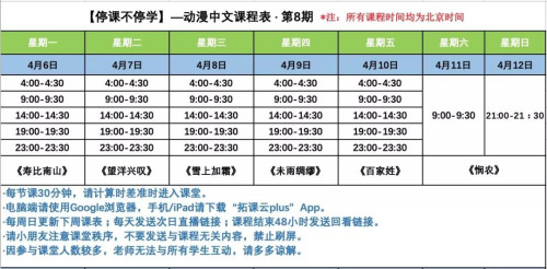 中國(guó)華文教育基金會(huì)動(dòng)漫中文課堂公益直播課程第八期課程安排如下: