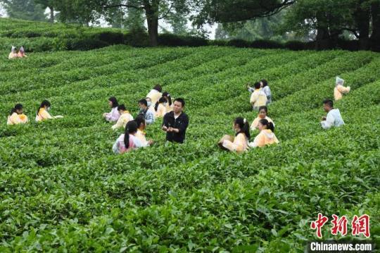 圖為兩岸青少年在茶山上采茶。周毅 攝