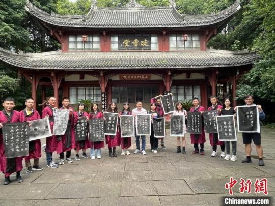 上香、祭文、行祭拜禮……在三蘇祠,臺(tái)灣大學(xué)生穿上漢服開展了祭拜活動(dòng),深入了解了中國傳統(tǒng)文化和禮儀。同時(shí),在趣味拓片活動(dòng)中,不少學(xué)生做了“但愿人長久,千里共嬋娟”字樣的拓片,表達(dá)了對(duì)中秋佳節(jié)的美好祝福。