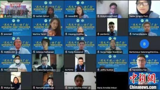 中新網(wǎng)桂林2月15日電 (林潔琪)2月15日,2022年漢語橋線上團(tuán)組項目—“遇見中國,心動廣西”桂林營在廣西桂林旅游學(xué)院開營,來自印尼特里莎克蒂旅游學(xué)院的147名師生參加活動。