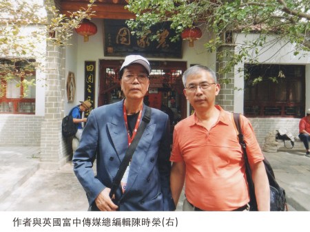 開完會(huì)去甘肅新疆參觀訪問中,受到英國富中傳媒總編輯陳時(shí)榮的關(guān)心照顧。在去看“月芽灣”時(shí),他拉著我的手說:“快到了,就在前面!”鼔勵(lì)之情,溢于言表。上坡下坡時(shí),他總是扶我一把。在參觀沙漠時(shí),他送了條絲綢頭巾給我。迎著風(fēng)沙,坐著敞蓬汽車在沙漠奔馳,多么遼闊,我的精神為之一振!