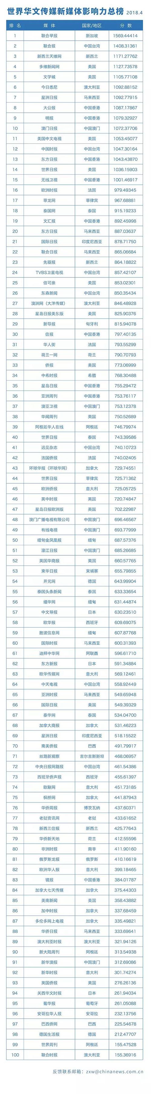 世界華文傳媒新媒體影響力榜單全文已在中國(guó)新聞網(wǎng)發(fā)布,讀者可點(diǎn)擊網(wǎng)絡(luò)鏈接http://www.chinanews.com/hr/2018/05-24/8521957.shtml查看。讀者也可通過中國(guó)新聞網(wǎng)官方微信公眾號(hào)(ID:cns2012)查看完整榜單。(完)