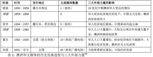 還有就是中國在 “大三角”中的推動作用。一是中國政府在外交策略上重視對外傳播和塑造海外形象,采取各種措施支持海外華媒,如中新社每年都加大對海外華媒包括澳洲華媒的供稿量。第二是中國的外向型經濟不斷發(fā)展,越來越多的公司進軍海外,不少成為海外華媒的廣告主。第三是中國社交媒體的繁榮。微信的全球傳播,使得移動互聯(lián)網時代華人圈有了合適自己的社交媒體,當?shù)厝A人們足出不戶,就可以方便地與中國和當?shù)剡M行聯(lián)系和交流,因此各種有關澳大利亞的微信公號層出不窮。總之,這三大外部力量促進了當代澳洲華文媒體的繁榮,也是澳華傳媒6個發(fā)展歷程的根本因素。