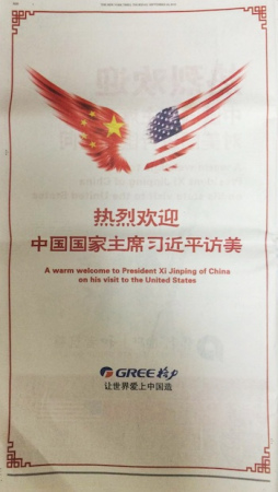 呼應(yīng)習(xí)近平訪美 五大企業(yè)在《紐約時報(bào)》發(fā)出中國品牌強(qiáng)音