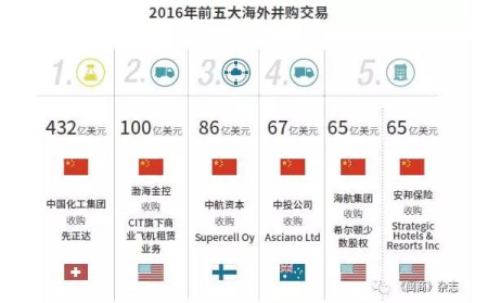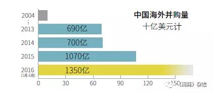 湯森路透統(tǒng)計數(shù)據(jù)顯示,2016年中國企業(yè)跨境并購交易額達(dá)2210億美元,為2015年1090億美元的兩倍還多,再創(chuàng)歷史新高。中國企業(yè)是2016年全球跨境并購的主導(dǎo)力量,其中中企在美國完成的并購交易額飆升841%。