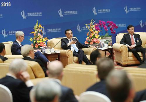 李克強總理3月26日下午同出席中國發(fā)展高層論壇2018年會的外方代表座談。