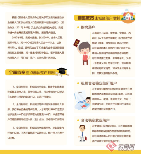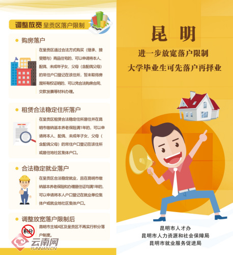 據(jù)昆明市委組織部人才工作處處長(zhǎng)蘇甦介紹,為解除青年朋友們的后顧之憂,昆明市于2017年底出臺(tái)了進(jìn)一步放寬大學(xué)畢業(yè)生落戶昆明的相關(guān)政策,其中提出對(duì)全日制高校畢業(yè)生、留學(xué)歸國(guó)人員和技能人才落戶條件全面放寬,實(shí)施“零門(mén)檻”落戶,鼓勵(lì)高校畢業(yè)生先落戶,再就業(yè)。