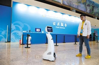 在新聞中心,記者遇到了機(jī)器人“艾米”。“艾米,新聞發(fā)布廳在哪里?”“艾米,餐廳怎么走?”對(duì)記者們拋出的各路問(wèn)題,“艾米”對(duì)答如流,成為新聞中心的迎賓使者,吸引眾人目光。