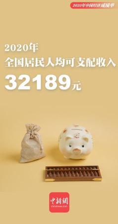 2020年全國居民人均可支配收入32189元