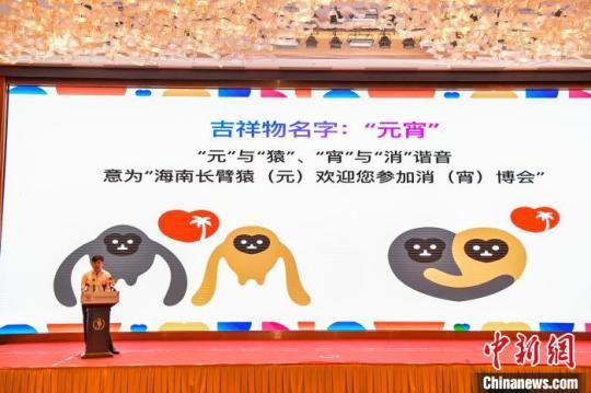發(fā)布會上還公布消博會吉祥物“元宵”,由一公一母兩只海南長臂猿組成。母猿名為“元元”,公猿名為“宵宵”,“元”與“猿”、“宵”與“消”諧音,意為“海南長臂猿(元)歡迎您參加消(宵)博會”。(完)