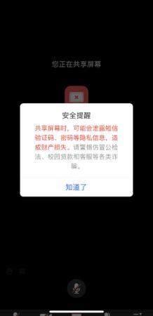 共享屏幕安全提醒。截圖