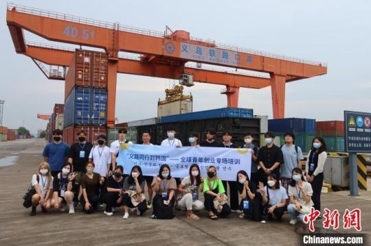 參與活動(dòng)的韓國青年在義烏鐵路口岸合影。董易鑫 攝