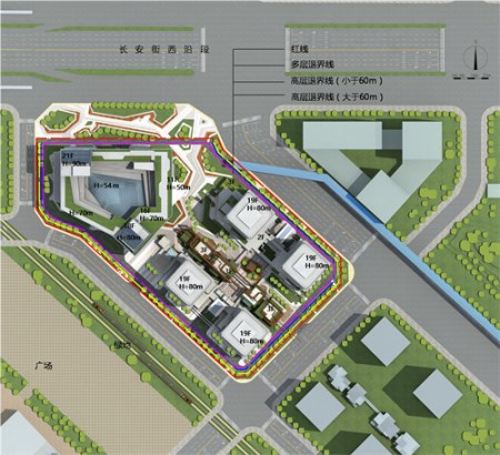 確定為緊鄰長安街的地塊,整體規(guī)劃、分步實(shí)施。用地面積4.36公頃,建筑面積21萬8千平方米。
