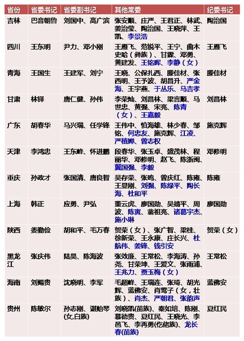 2017年12省份召開黨代會 選舉結(jié)果名單