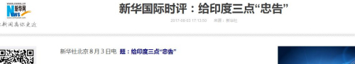 新華社8月3日下午發(fā)表題為“給印度三點‘忠告’”的時評文章,“一是希望印度不要強詞奪理,不要胡攪蠻纏;二是希望印度盡快老老實實退回去;三是希望印度不要執(zhí)意挑釁中國,與中國為敵沒有好下場?!?/p>