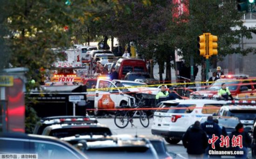 中新網(wǎng)11月1日電 綜合報(bào)道,當(dāng)?shù)貢r(shí)間10月31日下午,紐約曼哈頓下城發(fā)生卡車沖撞行人事件,導(dǎo)致至少8人死亡,12人受傷,嫌犯已被警方逮捕。紐約市長(zhǎng)德布拉西奧表示,這是一起恐襲事件。