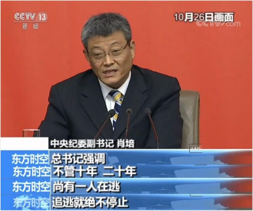 在10月26日舉行的十九大專題新聞發(fā)布會上,中央紀委副書記肖培指出:黨的十九大仍然作出反腐敗斗爭形勢依然嚴峻復(fù)雜的政治判斷,提出18字要求:堅持無禁區(qū)、全覆蓋、零容忍,堅持重遏制、強高壓、長震懾。