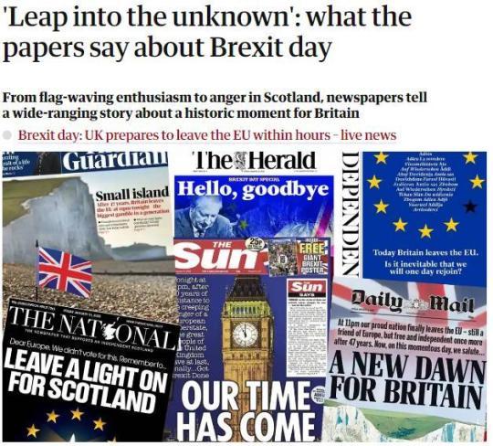英國(guó)正式脫離歐盟的大日子,自然是媒體輿論關(guān)注的焦點(diǎn)。