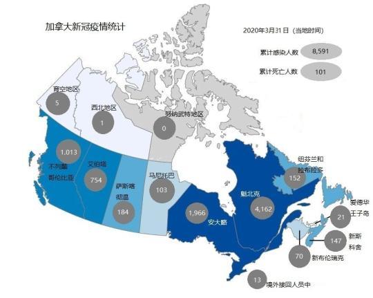 截至發(fā)稿時(shí)(當(dāng)?shù)貢r(shí)間3月31日18時(shí)20分),加拿大累計(jì)新冠病例共計(jì)8591例,死亡101例。