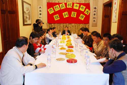 | 10月20日,中國駐馬賽總領(lǐng)事館舉辦慶祝中共十七大勝利召開座談會,駐馬賽總領(lǐng)館外交官員與法國南部中國留學(xué)生代表出席。 |