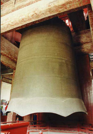 大鐘鑄造精致,采用中國優(yōu)秀傳統(tǒng)工藝無模鑄造法,體現(xiàn)了中國古代冶煉技術(shù)的高超水平。鐘聲輕擊圓潤深沉,重?fù)魷喓窈榱,音波起伏,?jié)奏明快幽雅。擊鐘時尾音長達(dá)2分鐘以上,鐘聲傳送距離為15-20公里。