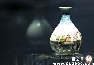 “天津館藏的‘清乾隆款琺瑯彩芍藥雉雞紋玉壺春瓶’,最引人注目的,不是因為它年代久遠,而是制作方法特殊,這種瓷器要先在景德鎮(zhèn)燒制素胎,千里挑一地精選,然后運到北京,由宮廷畫師用玻璃料精心彩繪,畫成后再選,再燒,燒成后除少量絕無瑕疵的精品可供皇家使用外,其余成品也必須全部銷毀,所以這小小的瓷瓶標志著當時制瓷業(yè)的最高工藝水平。”