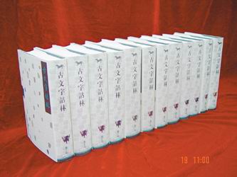 據(jù)光明日?qǐng)?bào)報(bào)道,這部匯集了一萬多個(gè)字頭,1000多萬考釋文字、煌煌12冊(cè)的巨著,是中國迄今為止規(guī)模最大、搜羅最齊備的古文字匯釋類工具書。它將歷代學(xué)者的古文字研究成果薈萃于一編,這在中國學(xué)術(shù)史上是第一次;它運(yùn)用計(jì)算機(jī)技術(shù)解決甲骨文、金文等8大類古文字的排版印刷,這在中國出版史上也是第一次;它根據(jù)秦漢篆書厘定了近萬個(gè)篆書古隸定字樣,為研究篆書演變至后世楷書架起了一座過渡的橋梁,這在中國字樣史上又是第一次。
