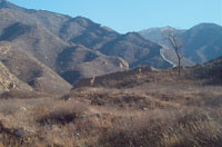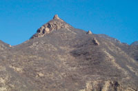 就在我們所走山路的盡頭,恰好就是這條明代磚石長(zhǎng)城的大豁口,顯然是很早以前爆發(fā)的山洪將七八米長(zhǎng)的城墻沖得蕩然無存,只剩下破碎的磚石和填充城基的廢石料散落在周圍。于秉銀分別指著南面和北面山梁上高大的山峰說,那兩座山峰上聳立的烽火樓實(shí)際上就是燕長(zhǎng)城與明代長(zhǎng)城的交會(huì)點(diǎn)。