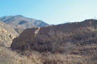 右手邊朝北的山坡忽然聳出一堵約有10米長(zhǎng)的土墻,土墻已經(jīng)殘破不堪,但恰好處在對(duì)面向陽山坡上燕長(zhǎng)城遺跡向南延伸的路線上。“這就是北京地區(qū)現(xiàn)在所能看到的一段燕長(zhǎng)城的城墻。”