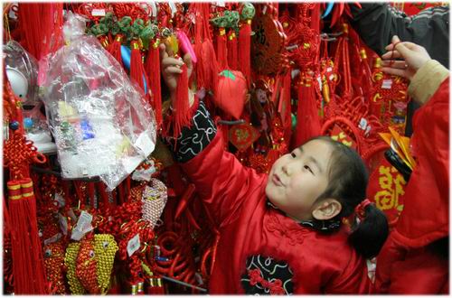小朋友商場選購春節(jié)飾品