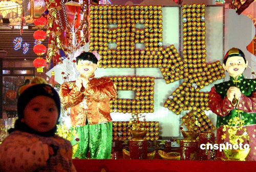 1月12日晚,江蘇南京湖南路獅王府美食一條街上出現(xiàn)“‘百福’迎新歲”景觀,其中“福”有一人多高,并由500多個小福組成。景觀前不少市民和游客駐足觀看。(中新社/阿董 攝)