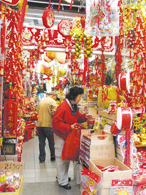 農(nóng)歷新年將至,根據(jù)習(xí)俗,又到了辦年貨的時候,美國紐約華埠各大小禮品店,均已紛紛掛起各式各樣的賀年飾物,街頭過節(jié)氣氛也愈來愈濃烈。(香港《星島日報》)