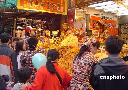 臺(tái)北傳統(tǒng)年貨大街迪化街年貨開賣,前往購買年貨的市民人山人海。(中新社/陳國明 攝)