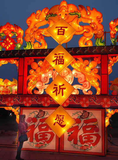 為豐富北京市民春節(jié)期間的文化活動(dòng),2006春節(jié)大型文化燈會(huì)將于1月29日至2月14日在北京朝陽公園舉行。這是繼1988年北京北海公園舉行的燈會(huì)后,又一次大型文化燈會(huì)。本屆燈會(huì)以“中國(guó)人、中國(guó)心、中國(guó)燈”為主題,以中國(guó)彩燈博物館和四川自貢燈會(huì)為班底,設(shè)計(jì)了40組頂級(jí)花燈、33組中型花燈、近千盞小型花燈。(新華社/陳樹根 攝)