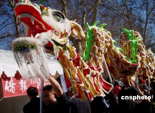 當(dāng)?shù)貢r(shí)間1月22日,美國洛杉磯華人華僑在艾爾蒙地公園新年游園會(huì)上舞龍賀歲,喜氣洋洋迎接中國農(nóng)歷狗年。(中新社/賈國榮 攝)