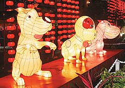 為了這場燈會,天后宮特地制作莊嚴神圣的菩薩燈組,包括千手千眼觀世音菩薩、大愿地藏王菩薩和天后圣母(媽祖)菩薩,每尊菩薩高約五六米,相當壯觀。另外,天后宮也特別制作了具有文化色彩的燈飾,例如報春門、引路燈等。同時,也有不少群狗燈飾,更增添了春節(jié)氣息。