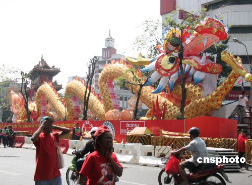 曼谷唐人街的春節(jié),一年盛過一年。今年,中國派遣了專業(yè)文藝團體赴泰,并贈送了大金龍彩燈和數(shù)千盞各式宮燈為泰國華僑華人過春節(jié)助興,濃濃中華情誼和喜慶傳統(tǒng)氣氛交織在一起,在異域展示著中華兒女的團結和思鄉(xiāng)之情。泰國各媒體已經(jīng)連續(xù)數(shù)日報道了將于28日開始的唐人街慶祝活動,并稱之為“曼谷歷史上規(guī)模最宏大的春節(jié)”。