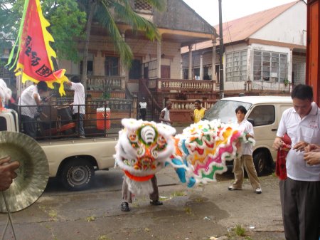 據(jù)巴華網(wǎng)消息,每年春節(jié)期間的醒獅拜年是科隆的一件盛事。早上9時,醒獅團(tuán)全體團(tuán)員在第五號街中央大街集中,由中華公所馮培堅主席和科隆四邑同鄉(xiāng)會黎壽佐主席帶領(lǐng),浩浩蕩蕩出發(fā),逐戶給僑胞商戶拜年。