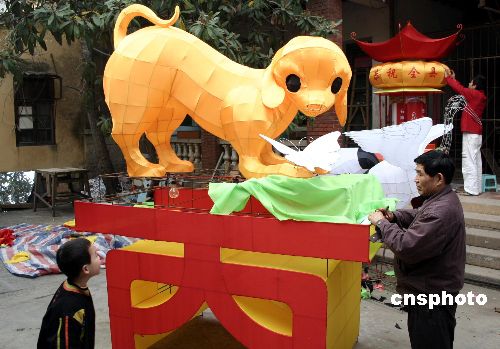 元宵節(jié)就要到了,福建泉州市花巷一家工藝作坊的扎燈藝人們緊張趕制各式彩燈,今年除扎制“旺狗報春”等傳統(tǒng)彩燈外,“神六”飛船、北京奧運會吉祥物等也成為藝人們的創(chuàng)作題材。(中新網/石勇 攝)