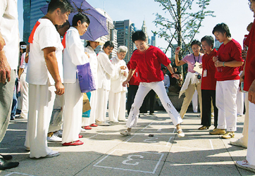 華聲報(bào)上海消息:2月12日,浦東世紀(jì)公園上演了一場(chǎng)聲勢(shì)浩大的傳統(tǒng)弄堂游戲比賽。幾百對(duì)父母帶領(lǐng)他們的孩子玩起了上世紀(jì)五六十年代的弄堂游戲,在擁抱傳統(tǒng)中歡度今年的元宵節(jié)。“打彈子、抽陀子、摜結(jié)子、刮片子、踢毽子、滾圈子、跳房子、盯核子、拉鈴子”。