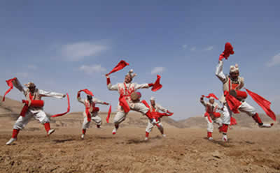 相傳具有2000多年歷史的安塞腰鼓以其豪邁粗獷的動作、剛勁奔放的舞姿,展示出黃土高原農(nóng)民樸素而豪放的性格。