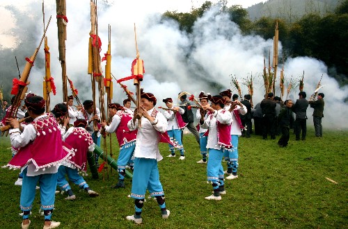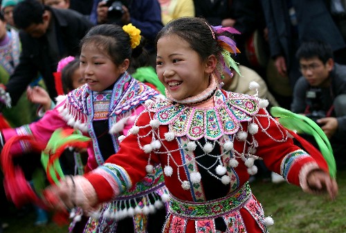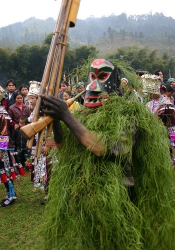2月14日是農(nóng)歷正月十七,也是廣西融水苗族自治縣安陲鄉(xiāng)傳統(tǒng)的“芒哥節(jié)”,四里八鄉(xiāng)的各族同胞相聚在一起與數(shù)十名“芒哥”同娛同樂!懊⒏纭笔敲缱迕耖g傳說中的一種娛樂神,演“芒哥”是苗族人民獨(dú)具特色的傳統(tǒng)活動(dòng)之一。(新華社)