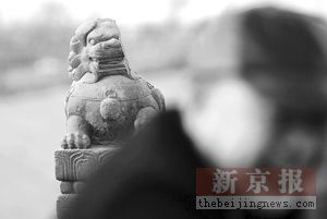 盧溝橋上,一只石獅半邊腦袋已被削去,這是盧溝橋石獅中惟一一只嚴(yán)重破損的石獅。破壞者的行為令人發(fā)指,而作為風(fēng)景旅游區(qū)和愛國主義教育基地,對(duì)盧溝橋上的文物損毀進(jìn)行修補(bǔ)還應(yīng)更及時(shí)。