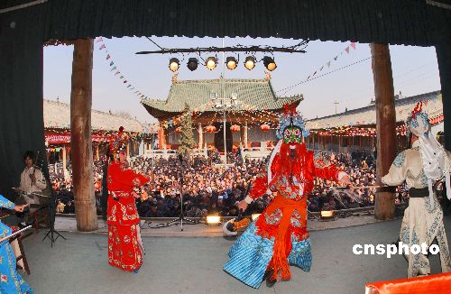 | 2006年3月2日,二夾弦劇團(tuán)正在河南省濮陽縣城隍廟戲樓上演出。(中新社/仝江 攝) |