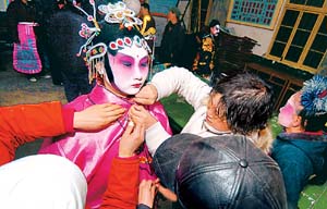 這樣的習(xí)俗在當(dāng)今社火中尚有遺存。寶雞一帶的傳統(tǒng)社火,在演員“開(kāi)臉”之前,可以有說(shuō)有笑,一旦“開(kāi)臉”之后便不是自己,不能隨便說(shuō)話,這也是原始巫術(shù)的遺風(fēng)吧。