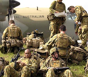 澳大利亞總理霍華德今天在布里斯班宣布決定,向局勢動蕩、治安混亂的所羅門群島增派110名部隊和70名警察,以協(xié)助平息那里的暴亂。這180名部隊和警察于今天下午2時30分自東部港市湯斯維爾分乘4架皇家澳大利亞空軍C130運輸機前往所羅門群島,將于當(dāng)晚抵達那里。