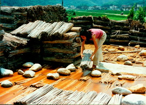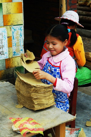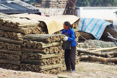 扶利村人以造紙為副業(yè),每家每戶有造紙作坊,石灰浸泡池內(nèi)一捆捆的竹子時(shí)刻在散發(fā)著文明的原始味道。