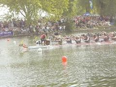 華聲報(bào)多倫多消息:經(jīng)過(guò)兩天超過(guò)100場(chǎng)賽事的激烈競(jìng)逐,由加拿大多倫多華商會(huì)主辦的第18屆東亞旅游多倫多國(guó)際龍舟大賽6月25日于中央島圓滿結(jié)束。豐業(yè)銀行隊(duì)力克群雄,以2分鐘2秒的成績(jī),奪得總決賽冠軍杯,全隊(duì)健兒獲得由東亞旅游送出的往返機(jī)票,他們將代表加拿大參與明年在東南亞舉辦的國(guó)際龍舟節(jié)。